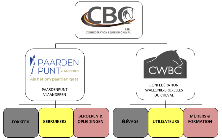 Le Conseil d’Administration de la Confédération Belge du Cheval comprend 10 membres, dont 5 représentants de chaque Confédération régionale: chaque fois 2 de l’élevage, 2 des utilisateurs et 1 des métiers – formation.