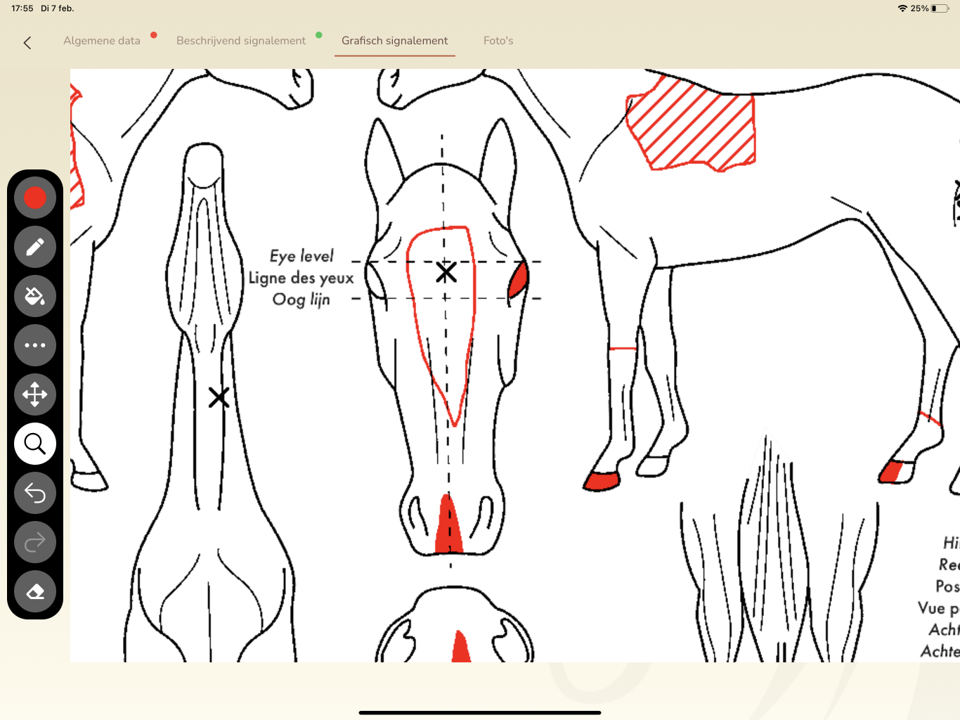 Lors du développement de l’application HorseID, des fonctions très utiles ont été prévues afin de faciliter considérablement l’établissement d’un signalement graphique pour l’identificateur.